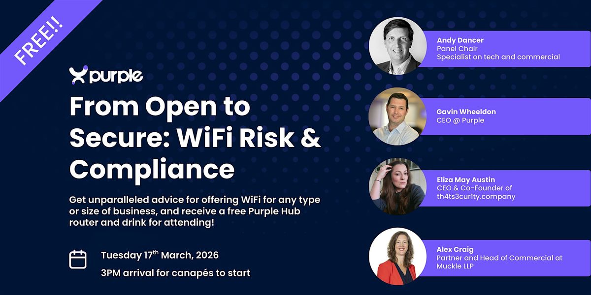 Join us in person for an engaging event all about transforming your WiFi from open to secure! We'll dive into the latest risks and compliance challenges, sharing tips and tricks to keep your network safe. And follow this up with a free drink in the bar.