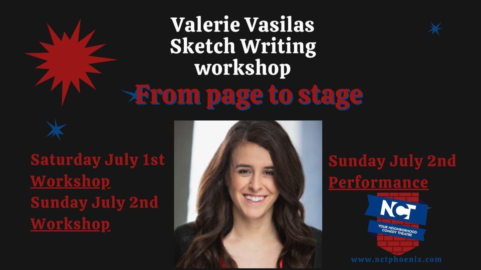 In this two day workshop, Valerie will guide you through the basics of sketch structure, writing techniques, and even how a writer’s room works. Over the course of Saturday July 1st and Sunday July 2nd, you’ll learn how to get your ideas from your head onto the page and collaborate with the other writers. Valerie will help you break down the different elements that make up a successful sketch.