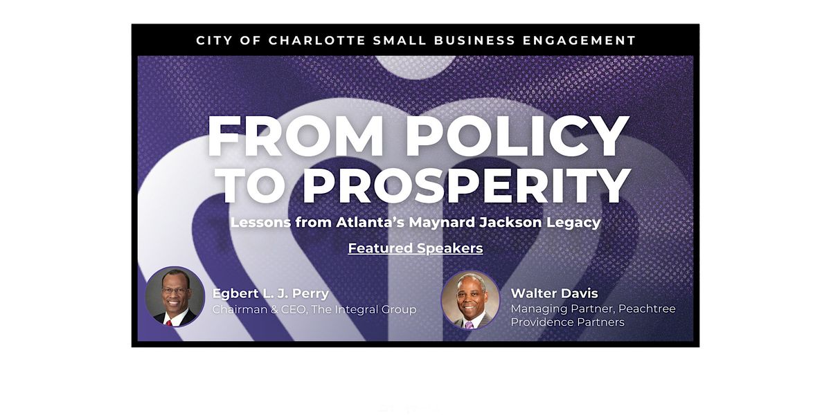 Get ready for an exciting in-person event where ideas meet action. From Policy To Prosperity is all about sharing insights, sparking conversations, and exploring how policies can shape a brighter future for the Queen City. This is about how intentional policy decisions created pipelines for small businesses in Atlanta and how those lessons translate to real opportunities in Charlotte right now. Come listen to leaders who understand how policy becomes projects, and how projects become contracts, capital, and scale.