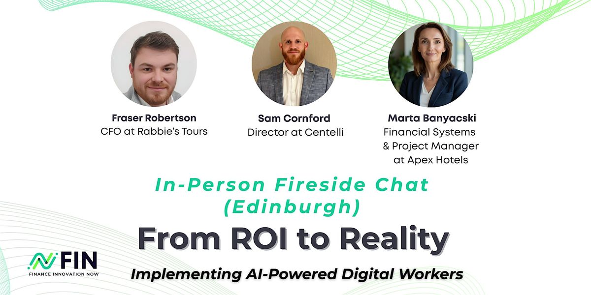 Hear first-hand experiences from Fraser Robertson, CFO at the award-winning Rabbie’s Tours, Marta Banyacski, Financial Systems & Project Manager at Apex Hotels and Sam Cornford, Director at Centelli - a global leader in AI, automation, and business intelligence.This session will explore what it really takes to implement AI-powered digital workers successfully.
