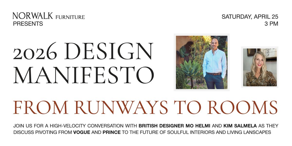 Join us in the Norwalk Furniture Showroom (IHFC M-108) during High Point Spring Market as we host British designer Mo Helmi and creative visionary Kim Salmela for a dynamic conversation exploring the future of soulful interiors and living landscapes.