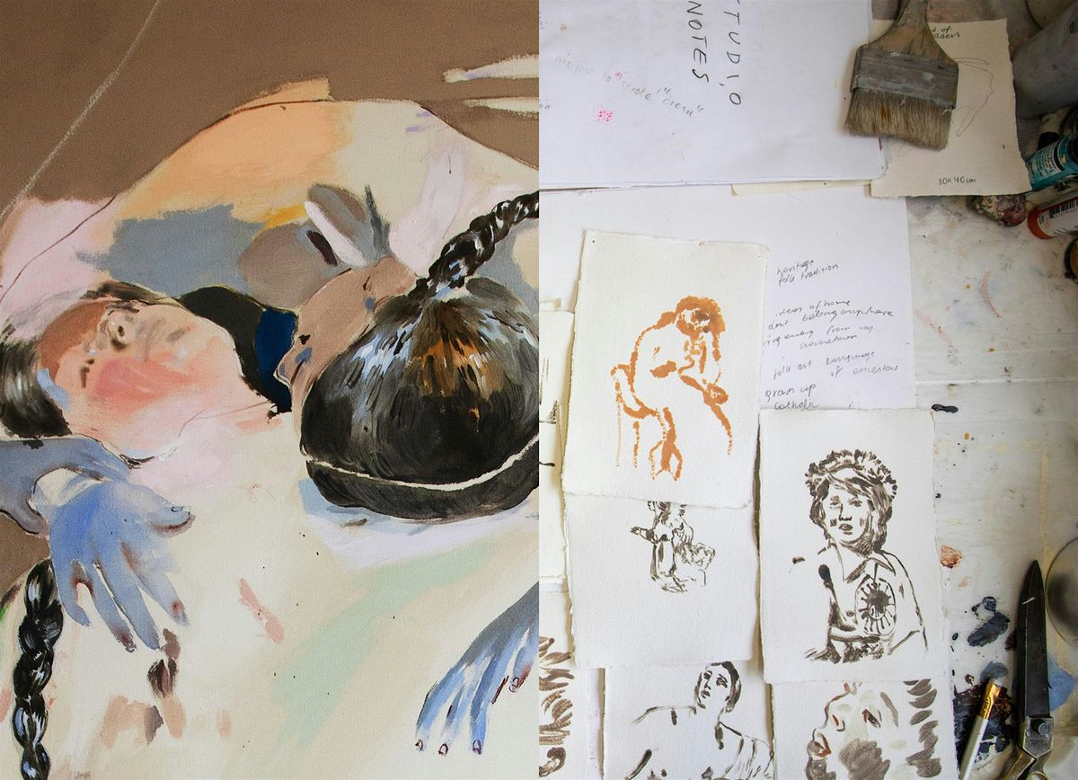 Marcelina Amelia is a multidisciplinary artist born in Poland, and based in Brighton. Her practice spans painting, print, textile, photography, installation, video, and performance. Drawing from her Polish heritage, she explores migration, motherhood, mental health, feminism, spirituality, personal rituals, and dreams, and has exhibited internationally. Founder of the art incubator Grupa Łono, member of the Rethinking Eastern Europe Collective, and in 2024 self-published book Mamalia, her work reflects a fascination with memory, both personal and collective, and the transformative power of storytelling.