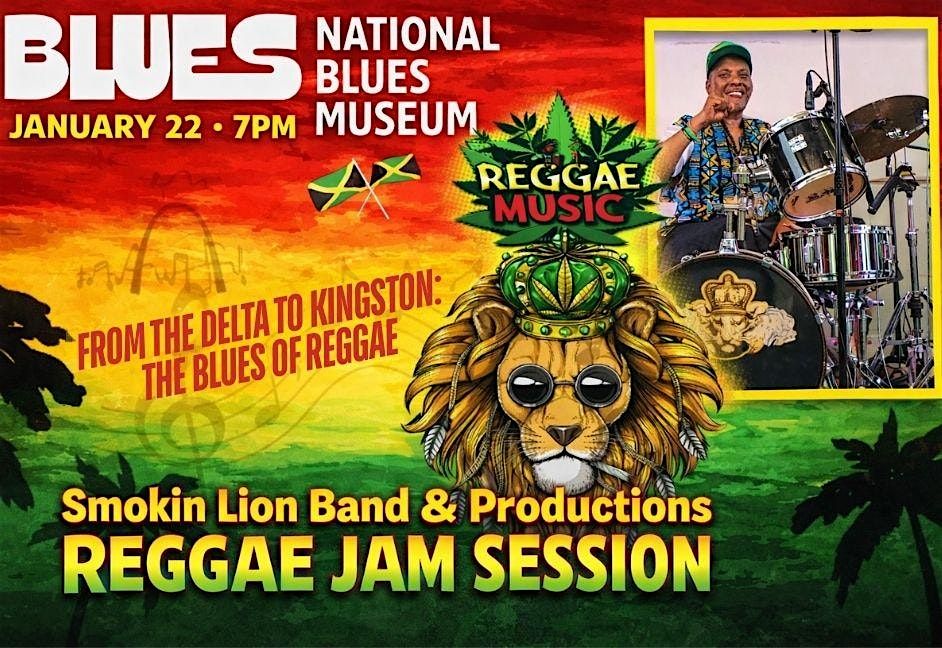 Get ready for an interactive night of live reggae, soulful grooves, and open jam energy as Smokin Lion Band & Productions brings their Reggae Jam Session to the National Blues Museum!