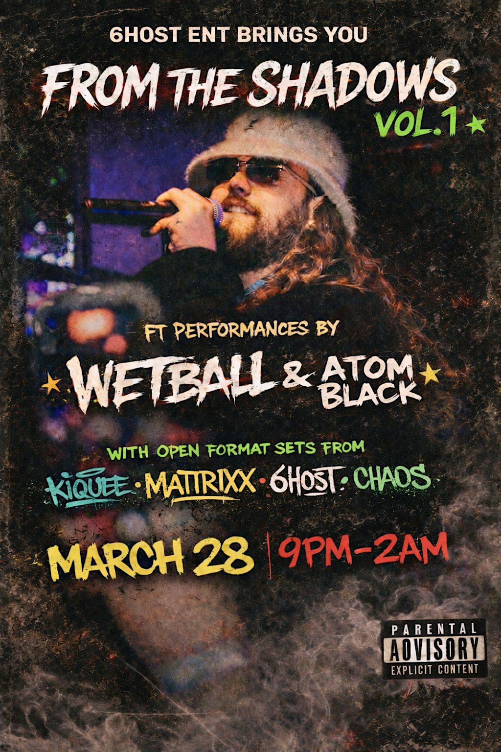 Step into the underground. Wetball and Atom Black hit the stage with raw, high-energy performances, backed by nonstop sets from DJs Kiquee, Mattrixx, 6HOST, and Chaos.