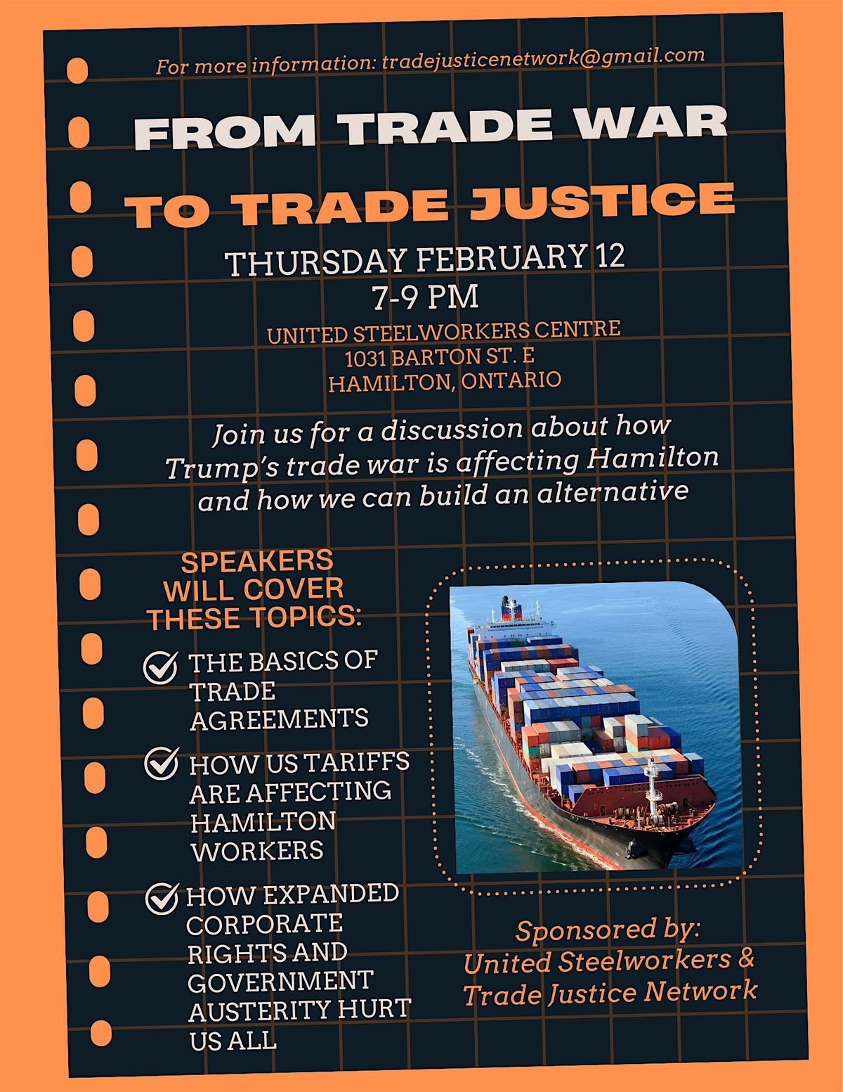 The United States’ escalating trade war is having real consequences for workers and communities in Hamilton and across Canada. This event will examine what is at stake - and how we can move from a trade war towards trade justice.