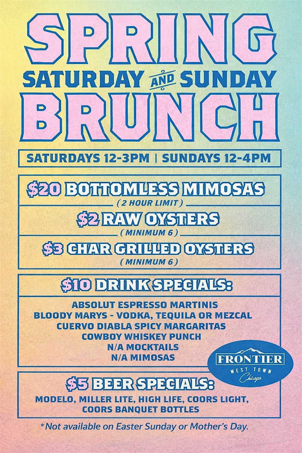 Frontier Weekend Brunch Specials
