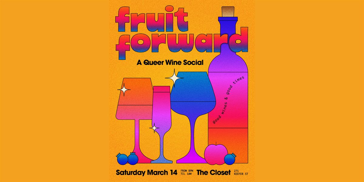 Join us at The Closet for FRUIT FORWARD , a queer wine social with natural wine, games, music and great company 🌈 🥂 🍇