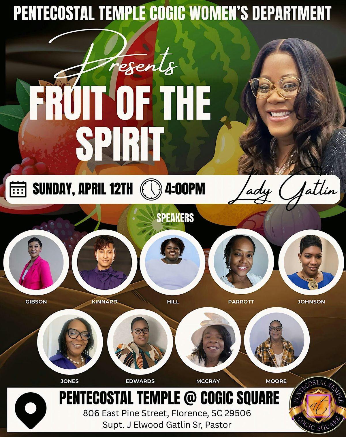Ladies, it’s time to gather, grow, and be filled! Join us for a powerful Women’s Pentecostal “Fruit of the Spirit” Service .