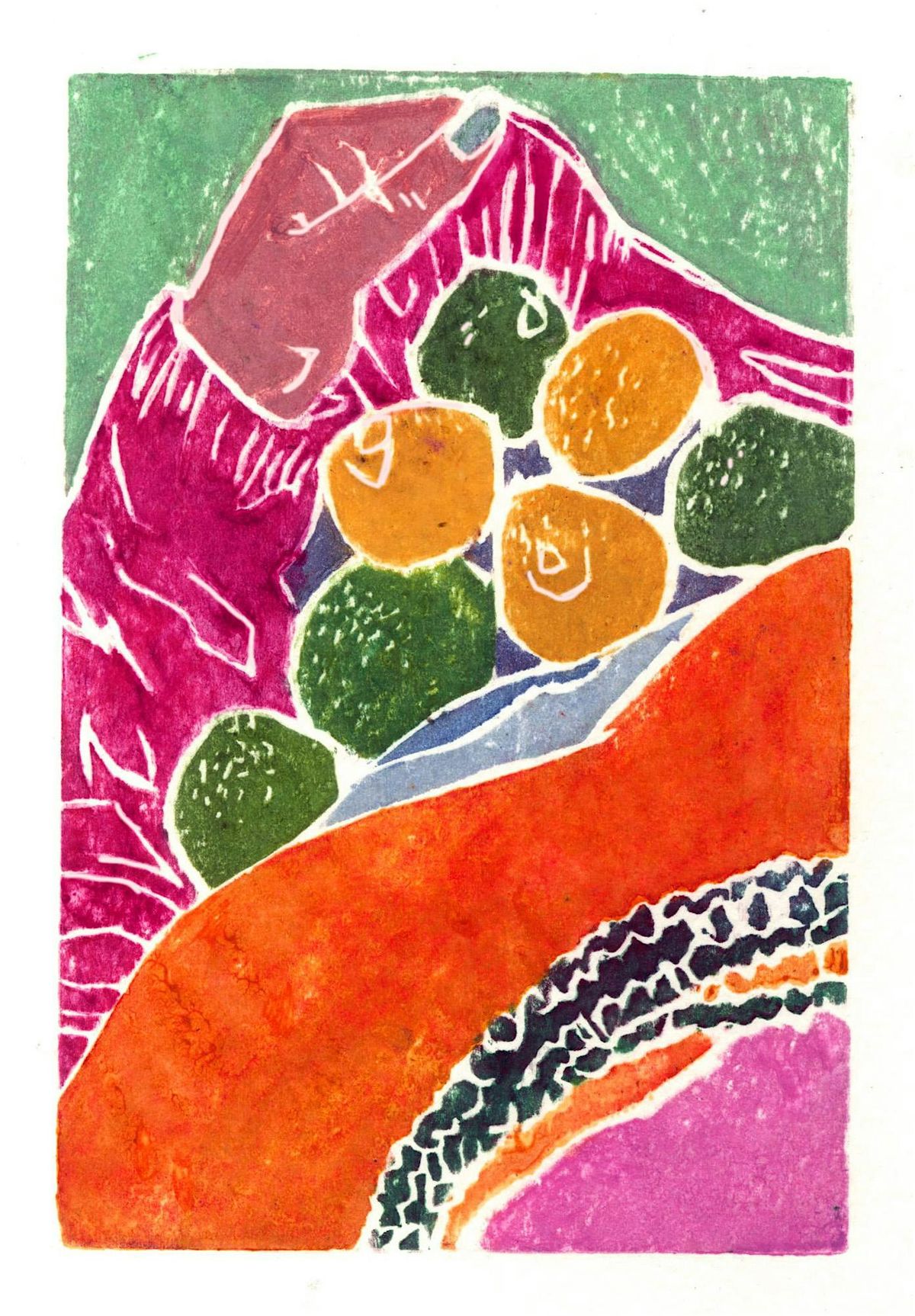 Wolfe’s white-line woodblock prints are vibrantly colored and extoll the diversity of life, while underpinning the need to protect what is vital and precious.