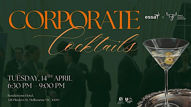 Corporate Cocktails 2026 is your opportunity to step beyond the classroom and into the world of professional networking. Hosted by FSA and ESSA, this exclusive evening brings together ambitious students and leading firms across finance and commerce.