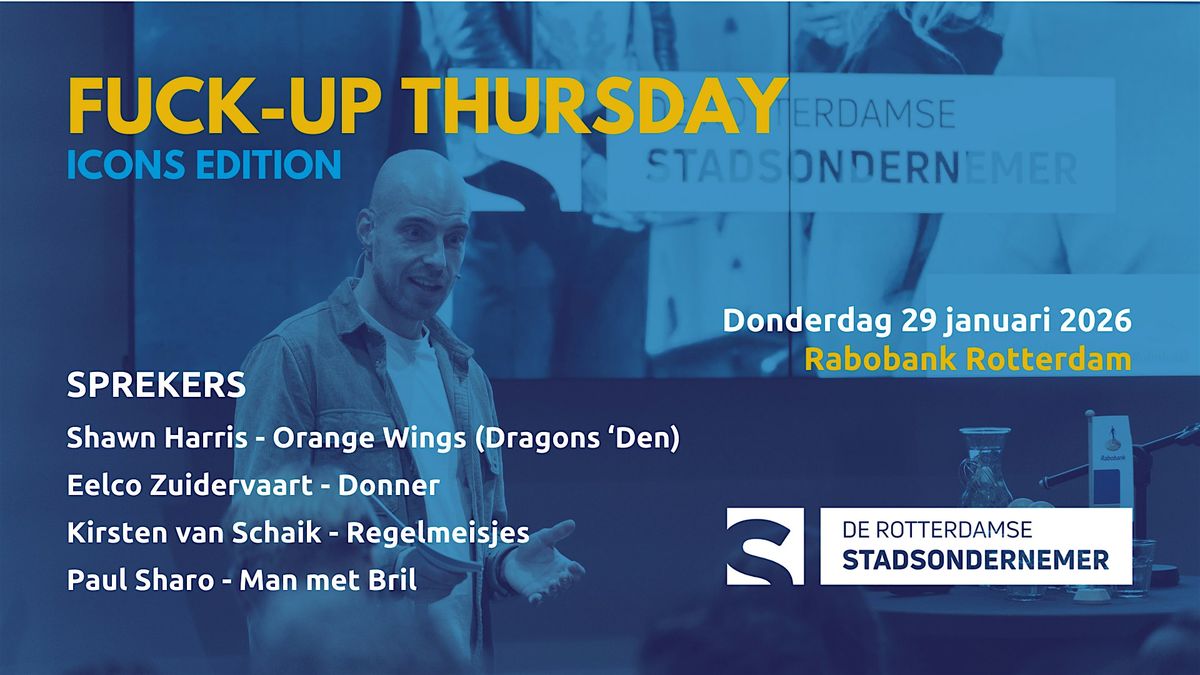 Op donderdagmiddag 29 januari vindt de 24e editie van de Rotterdamse Stadsondernemer plaats, een inspiratiemiddag over Fuck-ups.About this Event
