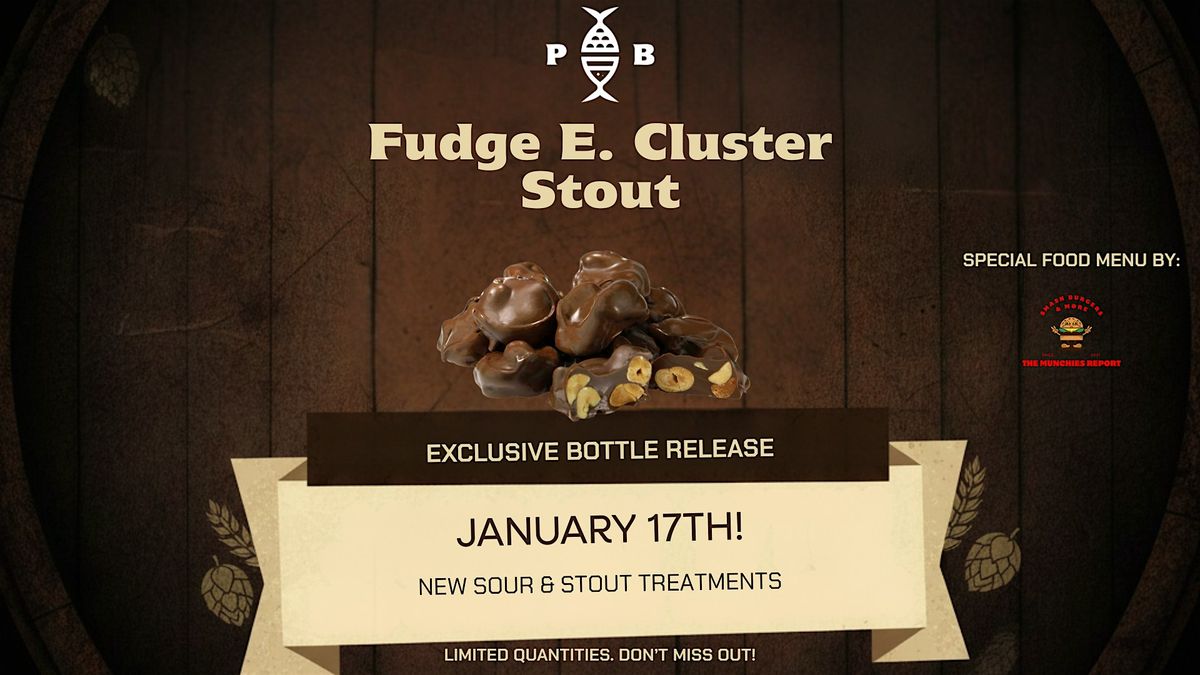 Join us on January 17th for the exclusive bottle release of Fudge E. Cluster, our decadent Imperial Stout inspired by rich chocolate fudge and nutty cluster candies. This special release features new stout and sour treatments, crafted to push dessert beer to the next level.