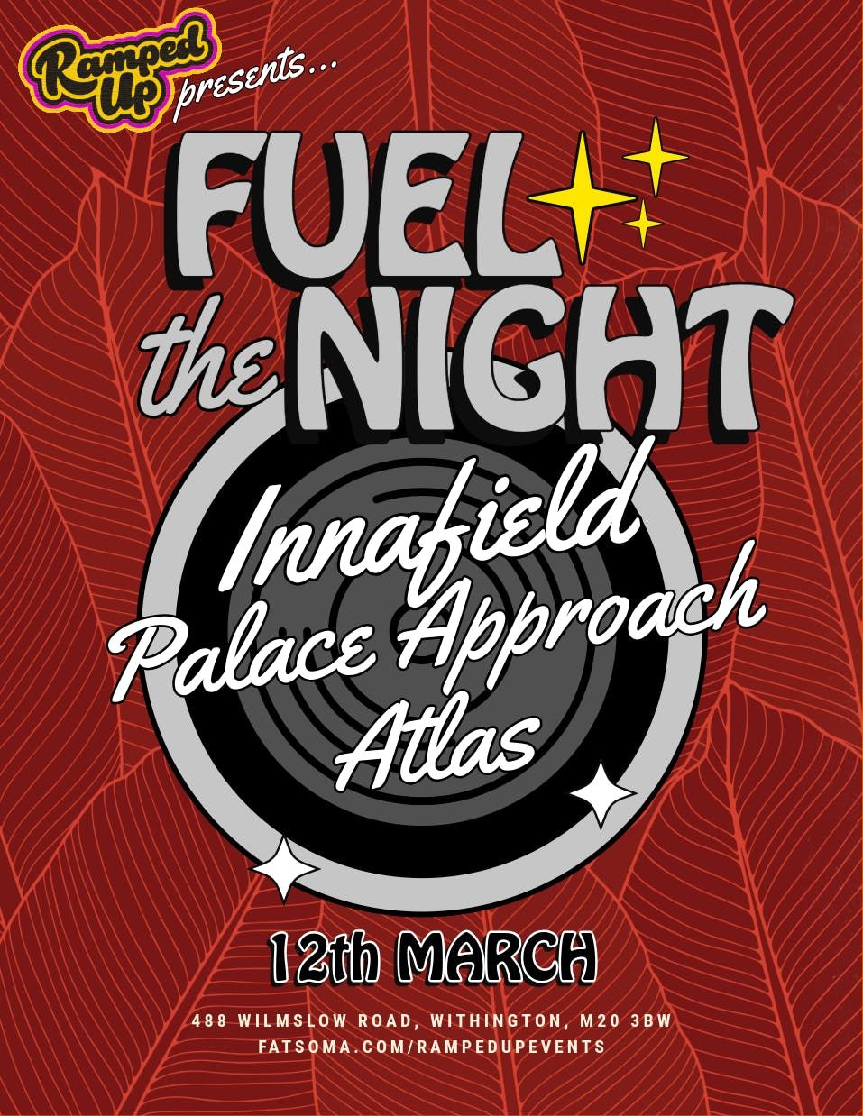 Ramped Up presents: Fuel The Night #3 w/ INNAFIELD, Palace Approach & Atlas✨🧡-12.03.2026For our 3rd show of the Fuel The Night series, Ramped Up is bringing a hot lineup of some of Manchester’s finest up and comers to stage — An unforgettable evening featuring psych rock/Indie sounds🍷FULL LINEUP:@inn_afield@[email protected]💸FIRST 20 TICKETS FREEDoors at 7pm/Curfew 11pm⏰488, Wilmslow Road, M20 3BW* @fuelcafebarDisclaimer: