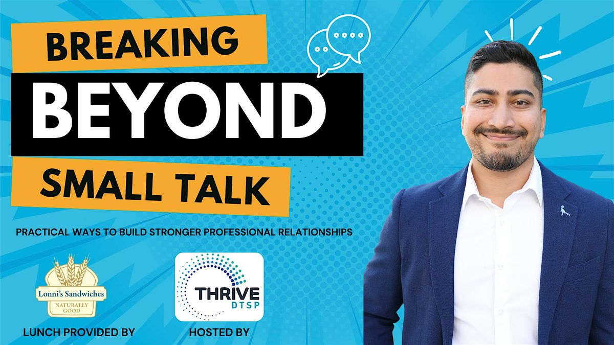 Strong professional relationships don’t happen by accident. In Breaking Beyond Small Talk, you’ll learn practical ways to deepen connections, improve conversations, and build trust—plus take part in an interactive exercise that helps you connect with someone new at Thrive.