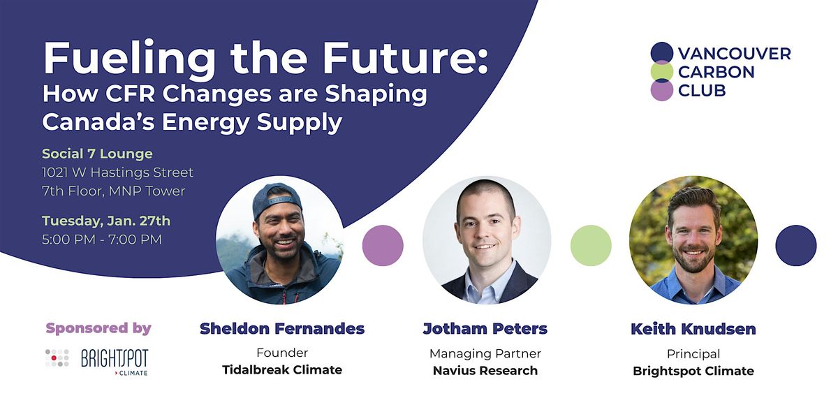 Join us for the inaugural Vancouver Carbon Club at Social 7 Lounge on January 27, 2026 at 5:00 PM PST for an insightful discussion on how changes in Canada's Clean Fuel Regulations (CFR) are impacting Canada's energy supply.