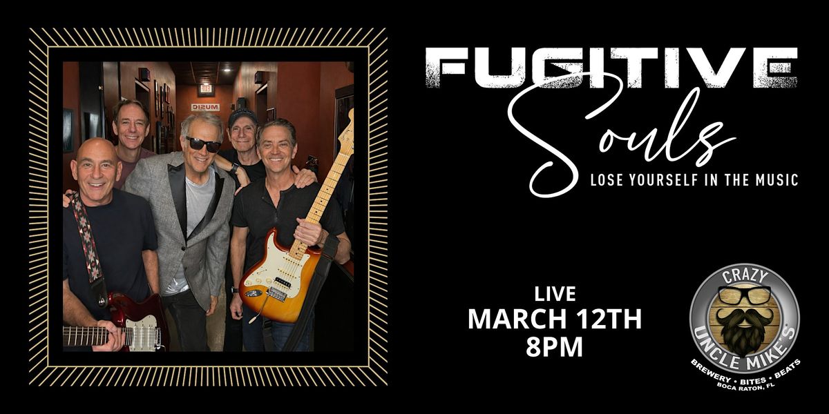 Check Out South Palm/North Broward's Hottest New Band - The Fugitive Souls, as they rock you through a diverse setlist of both crowd pleasers and deep cuts spanning four decades.