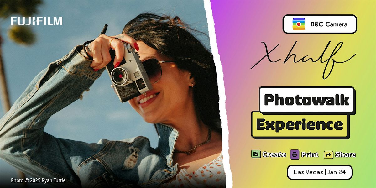You're invited to try out Fujifilm's New X-Half camera! Attendees will be able to loan a camera for the photowalk and experience the features exclusive to the X-Half (While supplies last). Ben Hecht of Fujifilm will be there to guide you through the camera. Please note that SD cards will not be provided, so please bring your own or stop by B&C Camera beforehand to pick one up.