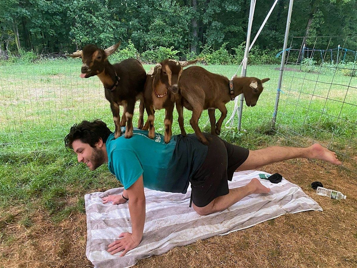 Bring your own mat, blanket, or towel but be prepared for the goats to potentially taste test everything!
