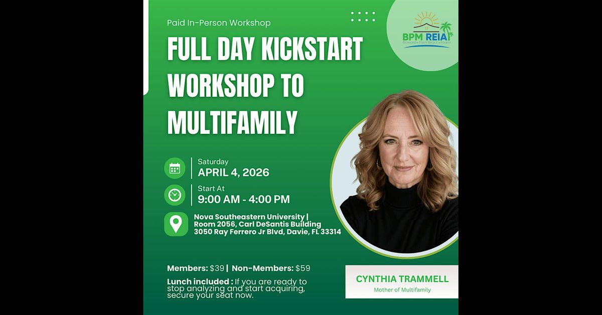 Join BPM together with Cynthia Trammell, Mother of Multifamily and founder of Ignite RE Wealth, for a powerful full-day implementation workshop focused on helping investors transition into small multifamily ownership with clarity and confidence.
