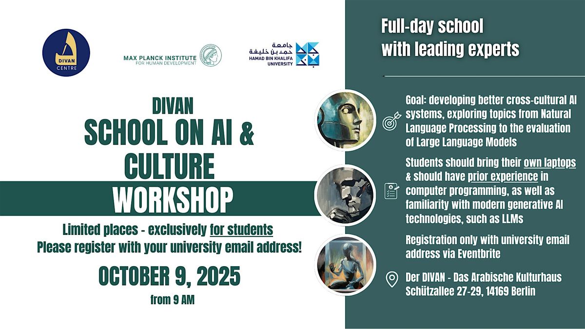 Ahead of the Symposium on Cross-Cultural Artificial Intelligence, we will host a full-day school, welcoming MSc and PhD students from German and international universities. The school will focus on developing better cross-cultural AI systems, exploring topics from Natural Language Processing to the evaluation of Large Language Models.