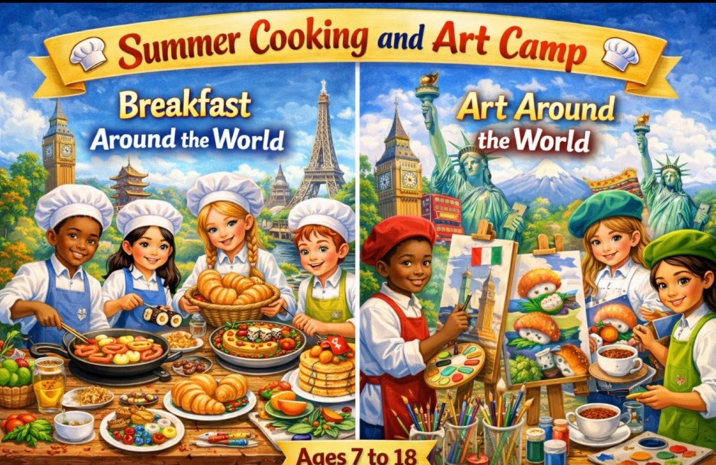 Full-Day Youth Summer Camp: Around the World -Cooking Breakfast & Mixed Media Art (Ages 7-13)