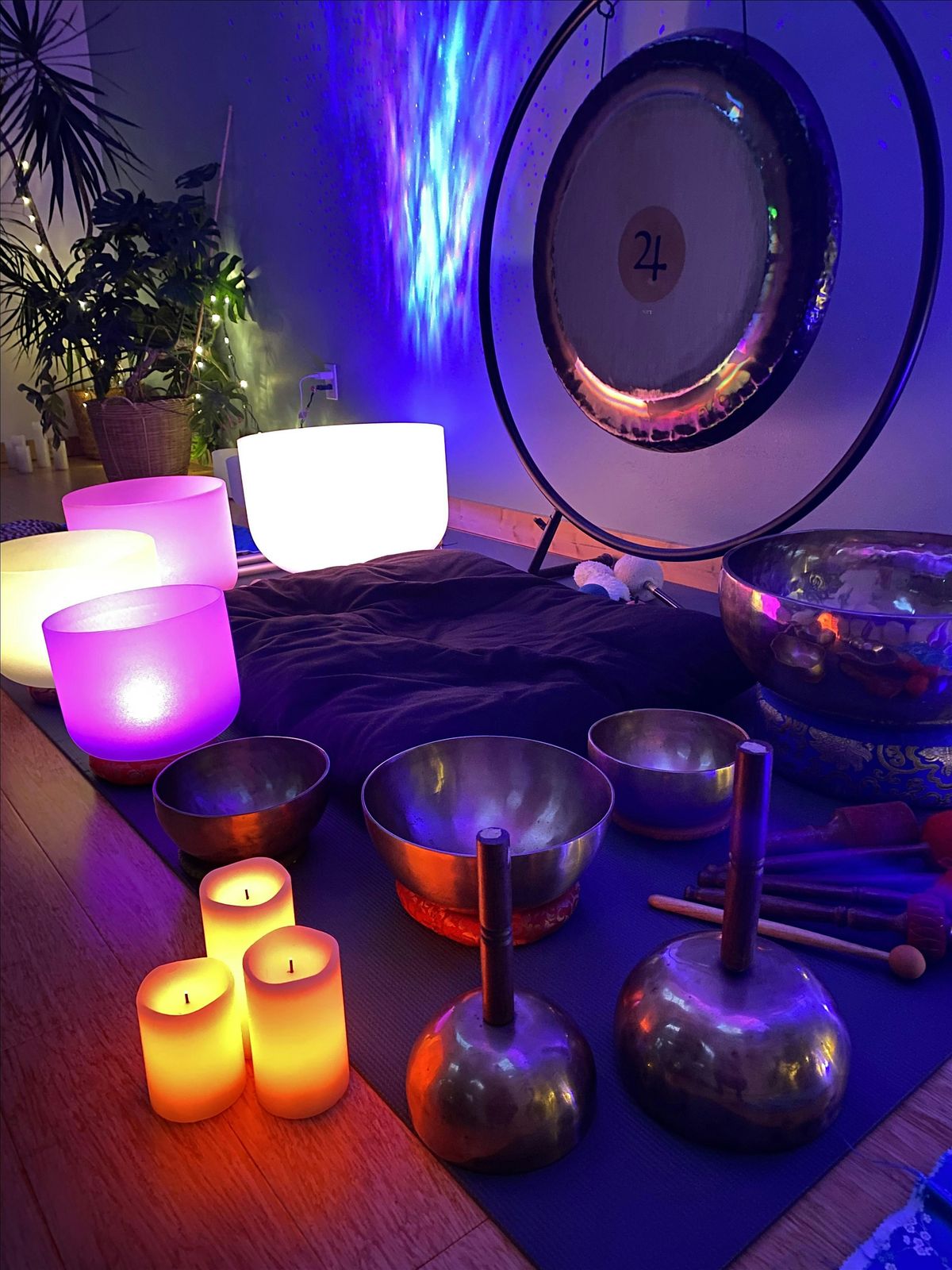 The focus for the sound bath will be around growth and expansion of conscious thought that allows us to move forward in our lives. Each sound bath is uniquely crafted around an intention and theme, keeping the experience fresh each time. For this sound journey gongs, Himalayan and Crystal singing bowls, drums, chimes and a crystal pyramid will be used together to create a sonic experience that lowers brainwaves, lowers cortisol levels, promotes relaxation and provides a safe space to let go and experience sound on a different level.