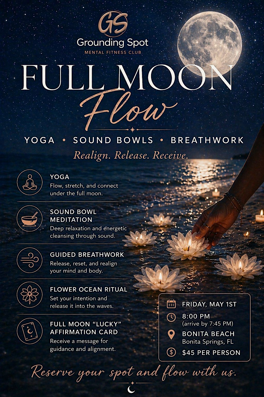 Join us for a magical evening under the full moon designed to help you realign, release, and receive 🌊✨