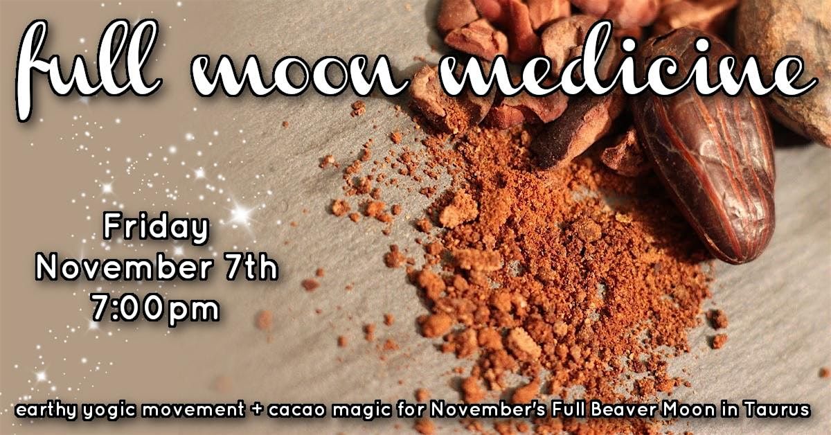 Gather under November's Full Beaver Moon in Taurus for an earthbound, cosmic lunar experience that connects you to Pachamama, Spirit, and the self. Beginning our spiritual journey with a collective oracle reading, aromatherapy enhanced breathwork, and a magical cacao meditation. Sipping on Mama Cacao's sweet nectar as she opens the heart and roots you into the Divine Mother Earth while we sing her soulful songs setting our intentions. Continuing to sip, sing, and drum, awakening the heartspace and the playful child within. Slowing down, resting in yin yoga poses supported by reiki and sound healing. Taking time to journal and process what arises. Closing with a soothing savasana and sharing in a supportive spiritual community, held by kindred Spirits in the physical and unseen realms.