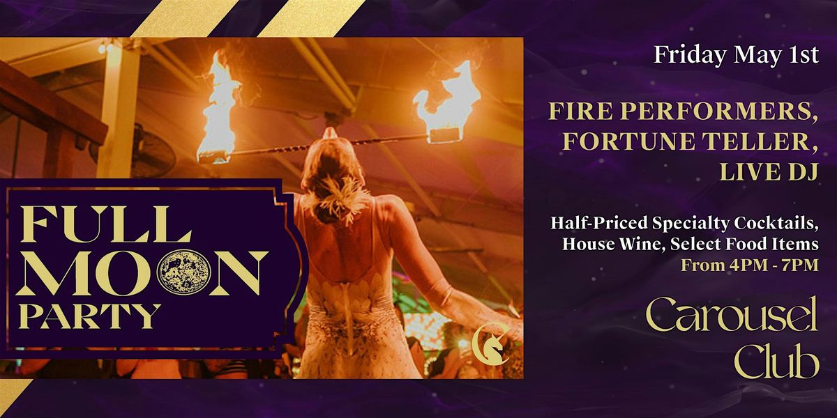 Join us at Carousel Club for an unforgettable FULL Moon Party, where mysticism meets movement and the night comes alive. Immerse yourself in a vibrant atmosphere filled with glowing fire, hypnotic rhythms, and celestial vibes as we celebrate under the moon’s radiant glow.