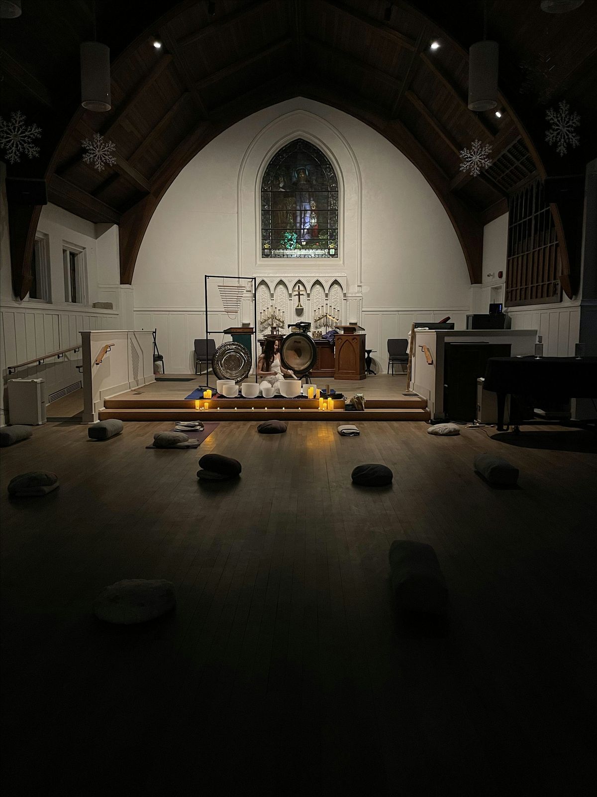 Sound Healing is rooted in the idea that the sound frequencies correspond to energy centers in your body. When your energy centers are out of balance, there are many methods to find greater harmony including yoga, meditation, dance, breathwork and sound vibration. The benefits of sound sessions; being immersed in the vibration of the gong and other instruments can be deeply healing, relaxing, improve sleep, release stress, remove blocks and deeply relax your nervous system. Sound healing can offer transformation energetically as well to help physical ailments and pain in the body. I believe the gong is one of the most powerful tools for healing, sound waves enter the body and creates change at a cellular level where new energy pathways can form.For our evening together, you will be bathed in the sound vibration from gongs, and a combination of crystal and/or Himalayan bowls. At times, I may also use chimes, rattles, flute, drum or my voice. Every sound experience is unique.
