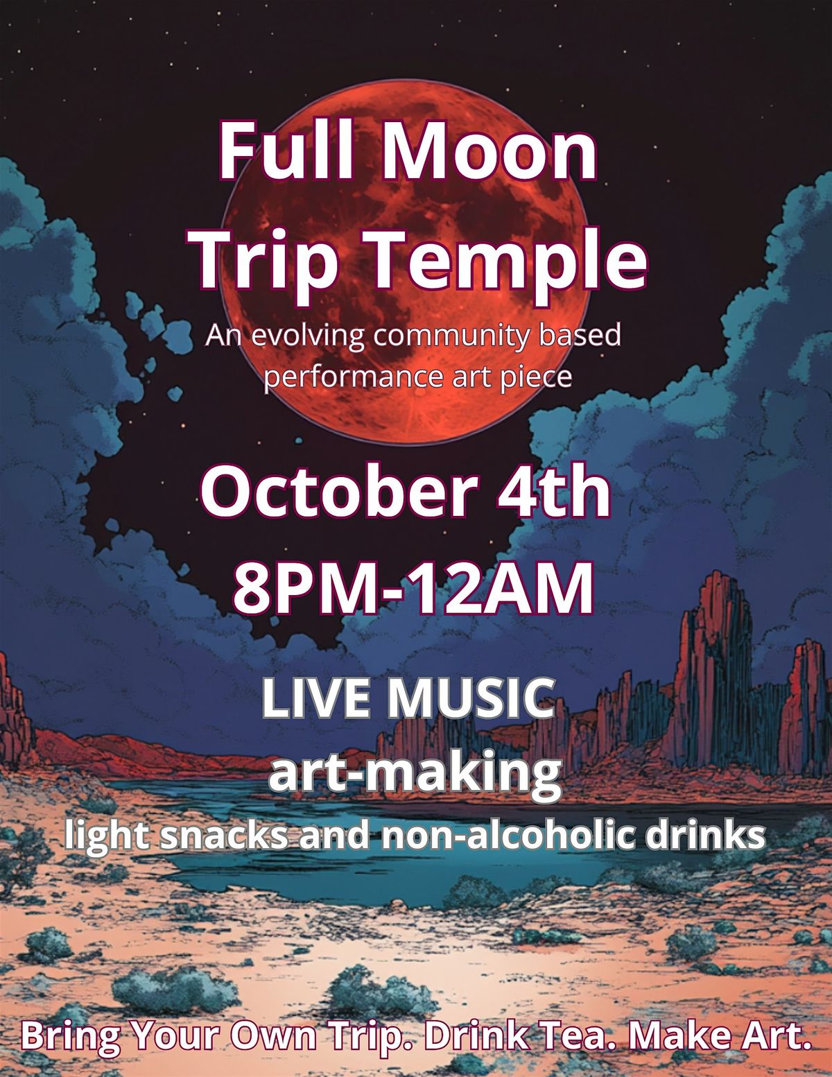 Trip Temple is a sanctuary for creativity, connection, and exploration. Join us for an immersive night of live music, art, and community building at Live Worms Art Gallery in San Francisco.Bring your own trip, express yourself through art, and vibe with like-minded souls in a space designed for open expression and deep connection. Whether you're painting, dancing, or simply soaking in the experience, The Church of Mother Gong's Full Moon Trip Temple is a place to explore the mind and spirit together.