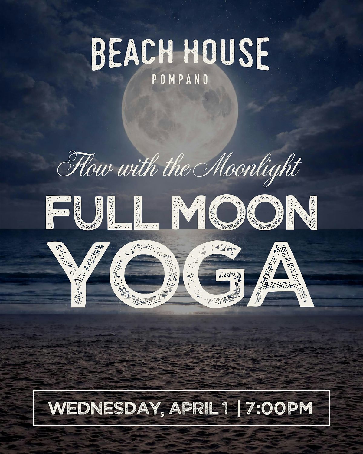 Yoga under the full moon hosted by Beach House Pompano at 7 pm.
