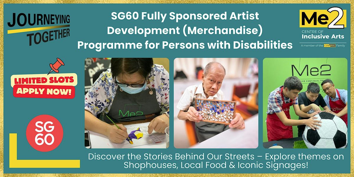 In celebration of Singapore’s 60th birthday, Me2 Centre of Inclusive Arts proudly presents the SG60 Campaign—a nationwide initiative that sponsors 60 individuals with disabilities across three signature programmes: Improv with Me2, Create with Me2, and Artist Development with Me2.