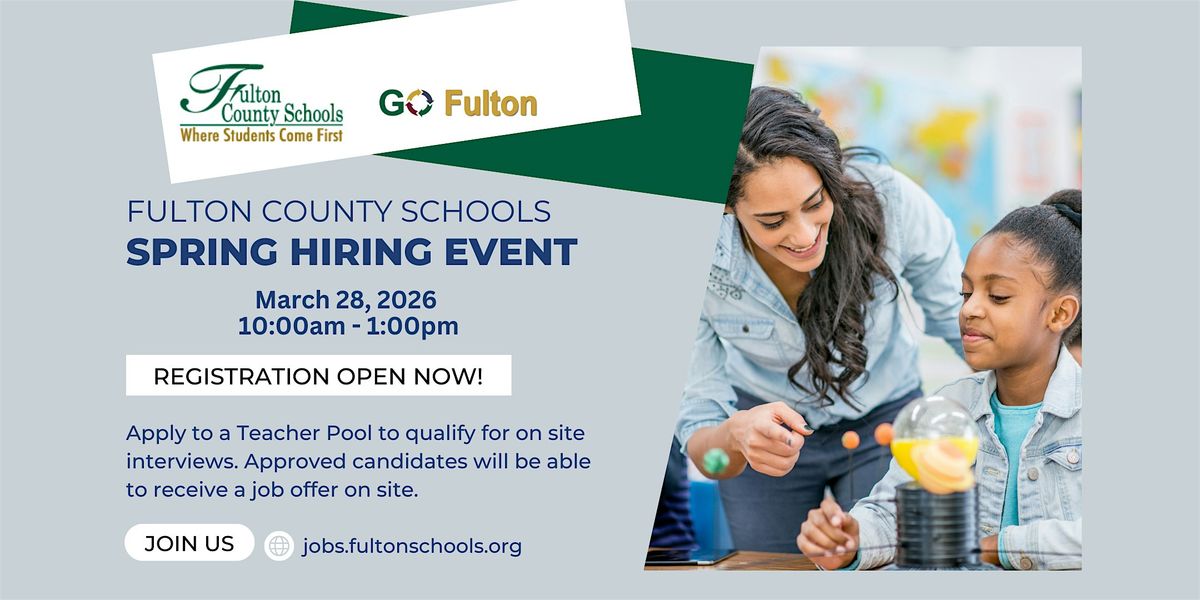 This is an opportunity to interview and become one of Fulton County School's newest family members. If selected, please be prepared to start the hiring process at the event.