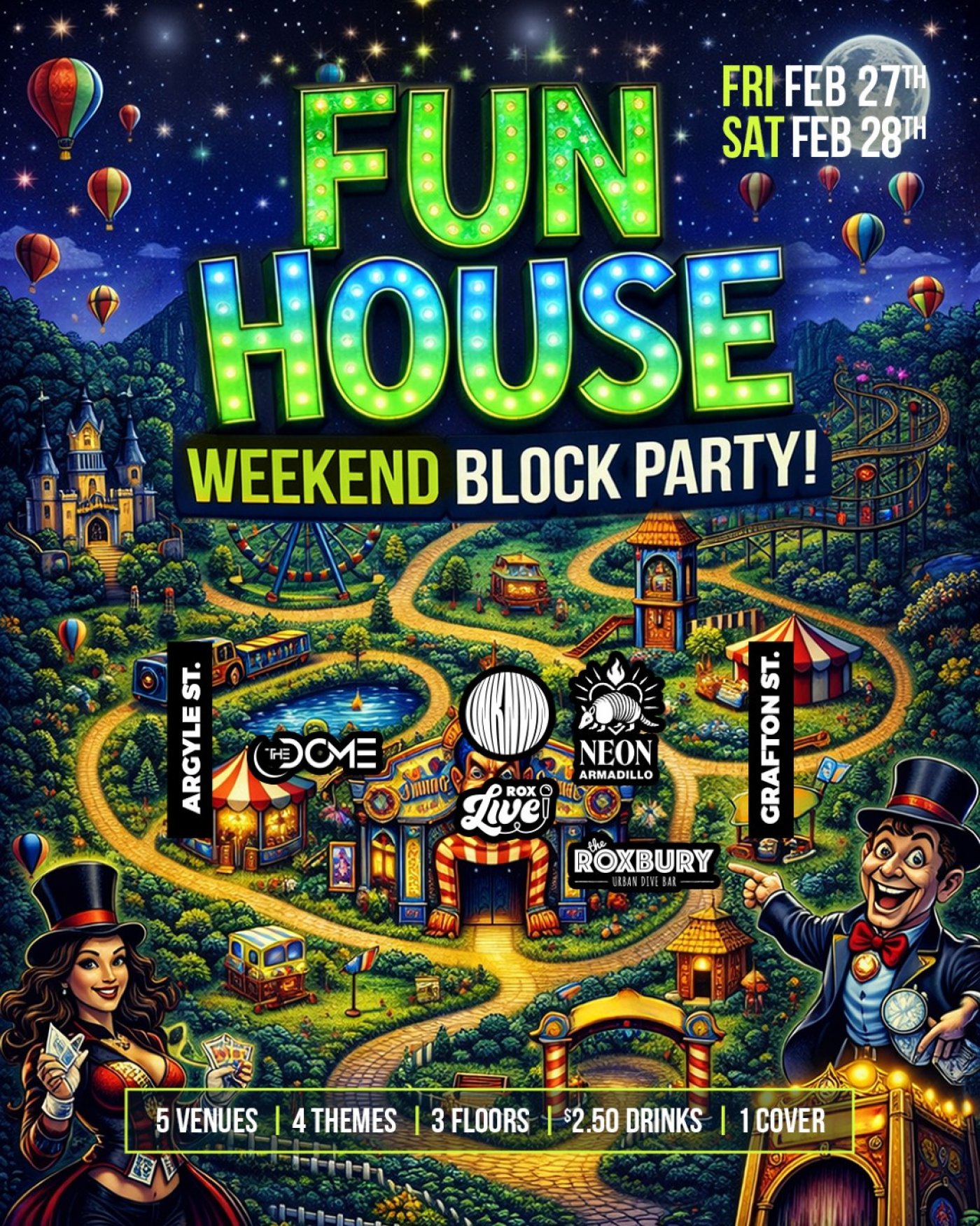 FUN HOUSE WEEKEND BLOCK PARTY is taking over Argyle & Grafton on Friday, Feb 27 & Saturday, Feb 28