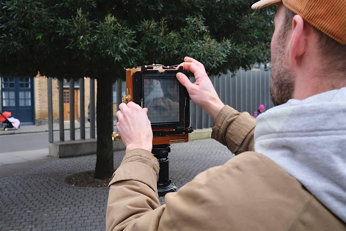 ● Shoot with large format film – each participant will photograph one subject of their choice (architecture, still life, portrait, or street scene). The camera setup and a selection of lenses (equivalent to 45mm, 50mm, and 70mm in 35mm format) will be provided.