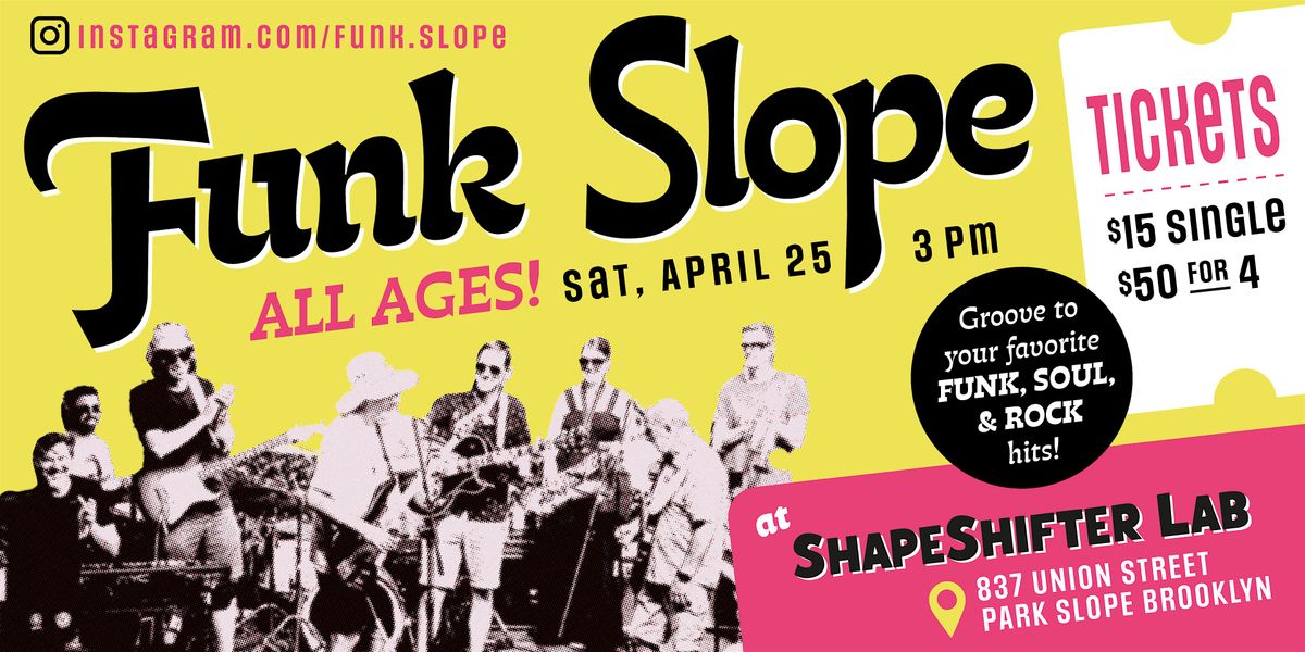 Putting the funk back in Park Slope, Funk Slope is a local nine-piece collective of Park Slope’s funkiest dads and moms playing classic funk, soul, hip-hop, and rock hits. Get ready to groove to smash hits and deep cuts while Funk Slope puts you into a funky trance.