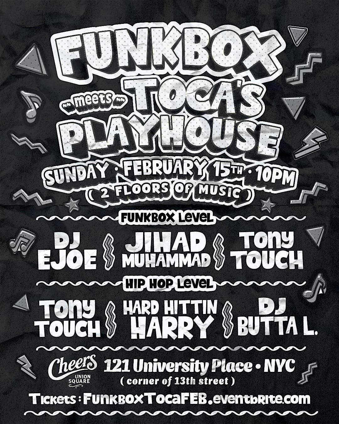 Funkbox level w/ guest djs Jihad Muhammad and Ejoe.. Classic Hip Hop and more on level 2 w/ guests Hard Hittin Harry and Buttal L. Resident Dj Tony Touch as well. 21 and over