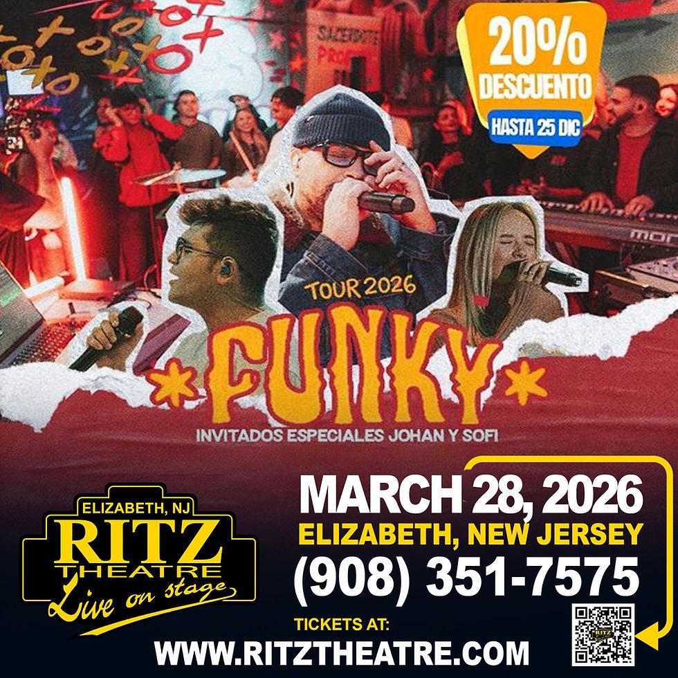 🎉 Welcome to Funky Johan & Sofi, where the impossible becomes possible and dreams take flight! 🏛️ Join us at Ritz Theatre - NJ in the heart of Elizabeth, NJ for an event that will redefine your expectations. 📅 On March 27th, 2026 at 07:00 PM, witness the transformation of space and time into something truly magical. ✨ It's a curated experience combining the best of innovation, entertainment, and community spirit, creating moments that will be remembered for years to come. Whether you're a first-time visitor or a seasoned enthusiast, prepare to be amazed. 🎊 Book now to ensure your place in this unforgettable experience!http://maps.seatics.com/RitzTheatre_Endstage_2018-10-06_2018-09-20_0948_SVGC_tn.gif