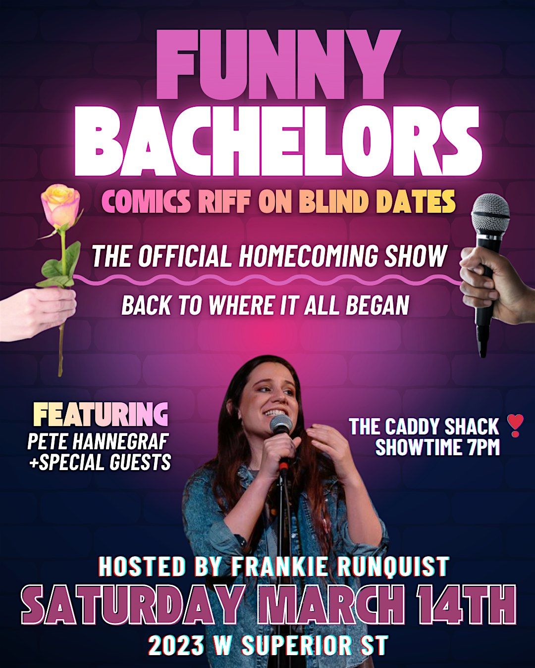 It’s part comedy show, part reality dating experiment, and fully chaotic fun. AND it all began on this exact stage 3 years ago. Since then, we have expanded to multiple cities and states, been on interviewed on multiple new sources, and been featured in the 10k laughs festival.