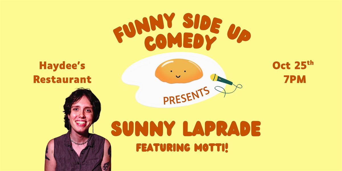 Come join us for a crackin' good time with Sunny Laprade at Haydees Restaurant in Mt. Pleasant! We have a fantastic lineup featuring Motti (NYC) and local comics.