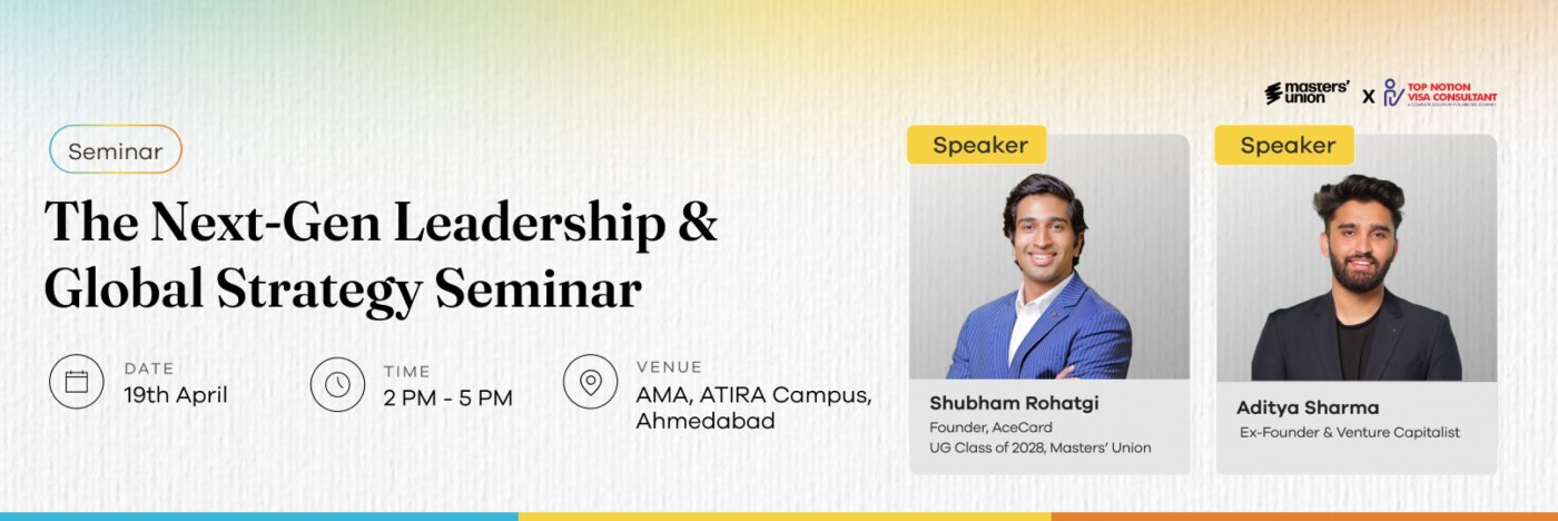 Top Notion Visa Consultant and Masters Union invite an exclusive group of 100 students and parents to The Next-Gen Leadership & Global Strategy Seminar. This isn't a lecture; it’s a high-impact strategy session designed to shift your mindset from "student" to "global strategist."