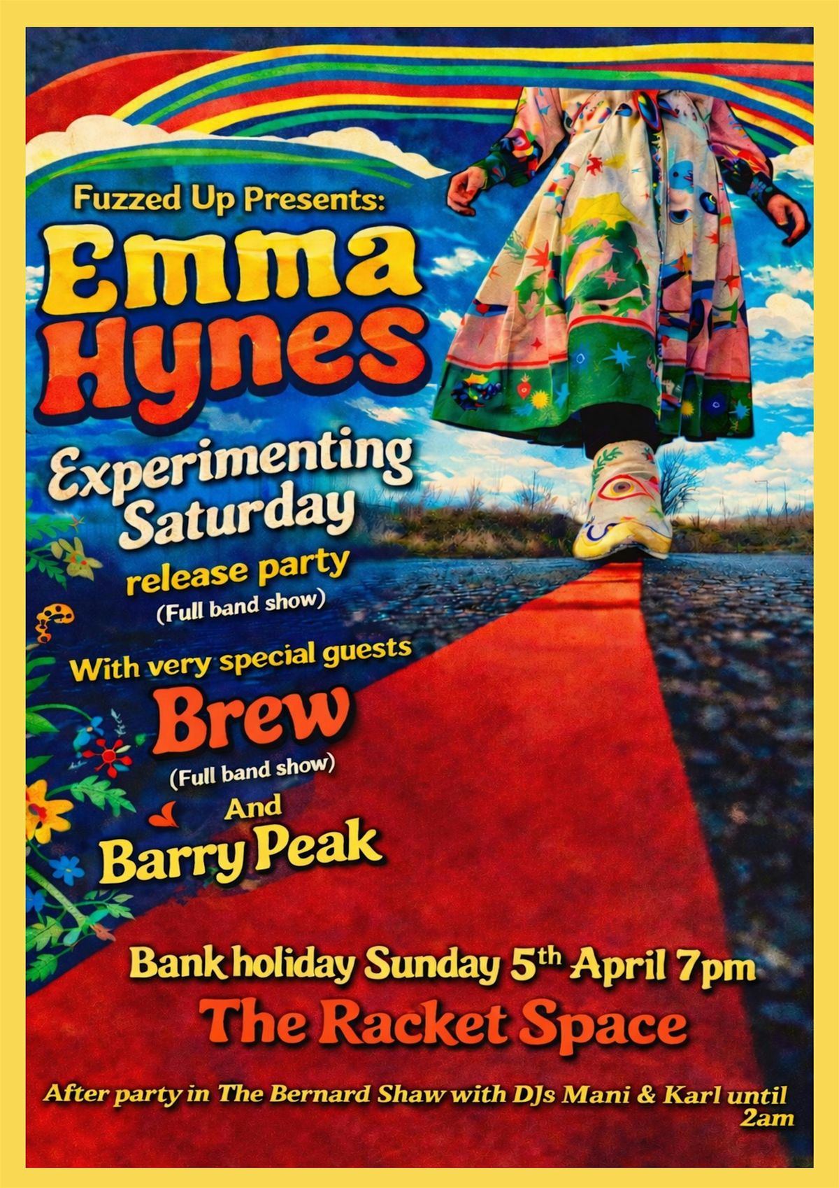 Emma Hynes (full band show) Experimenting Saturday single launch + Brew (full band show) + Barry Peak + after party with DJs Mani & Karl
