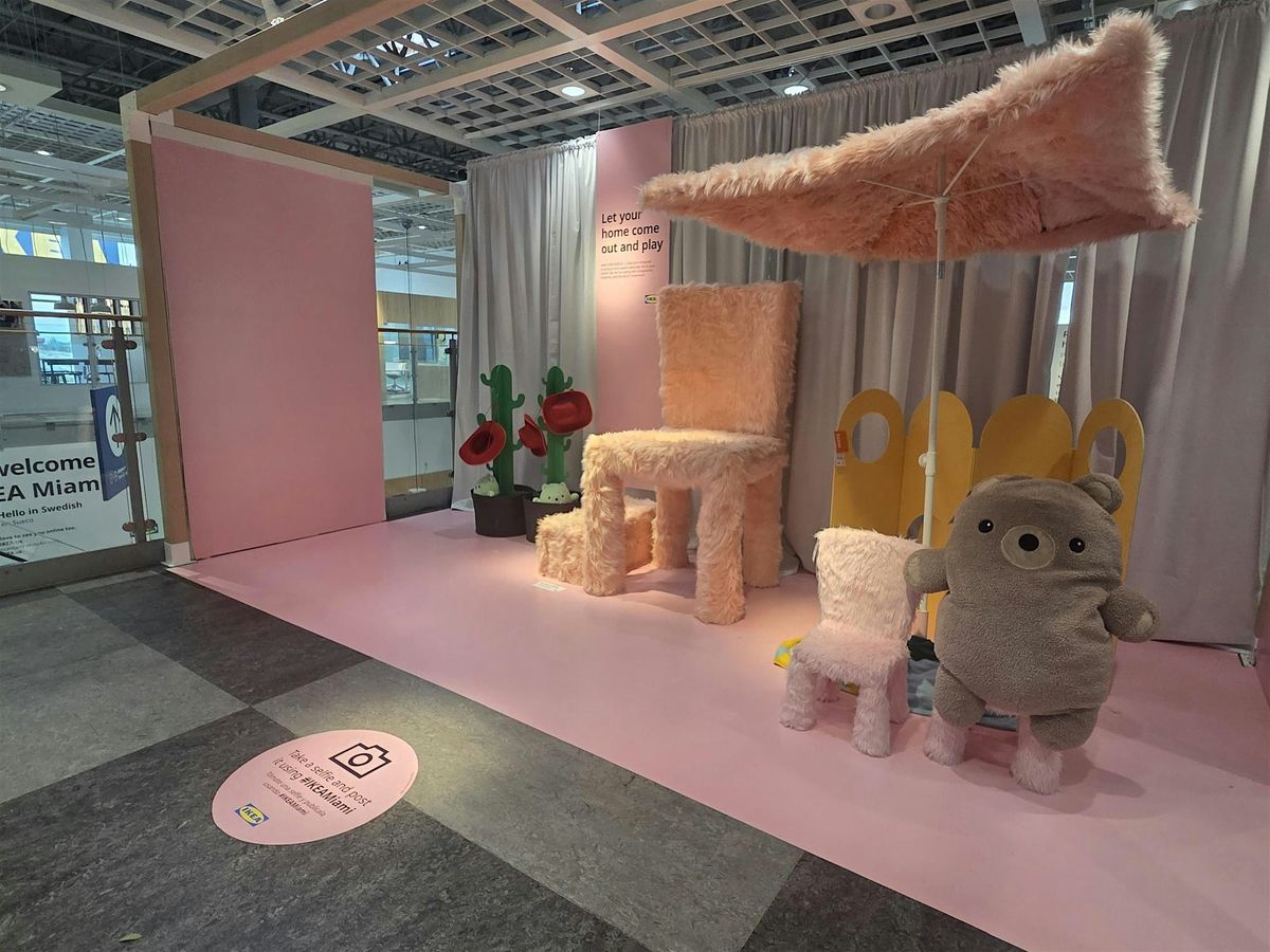 Stop by IKEA Miami to experience the GREJSIMOJS fuzzy pink chair—a giant, bright pink, ultra‑textured installation made for selfies, creator content, and family photos.