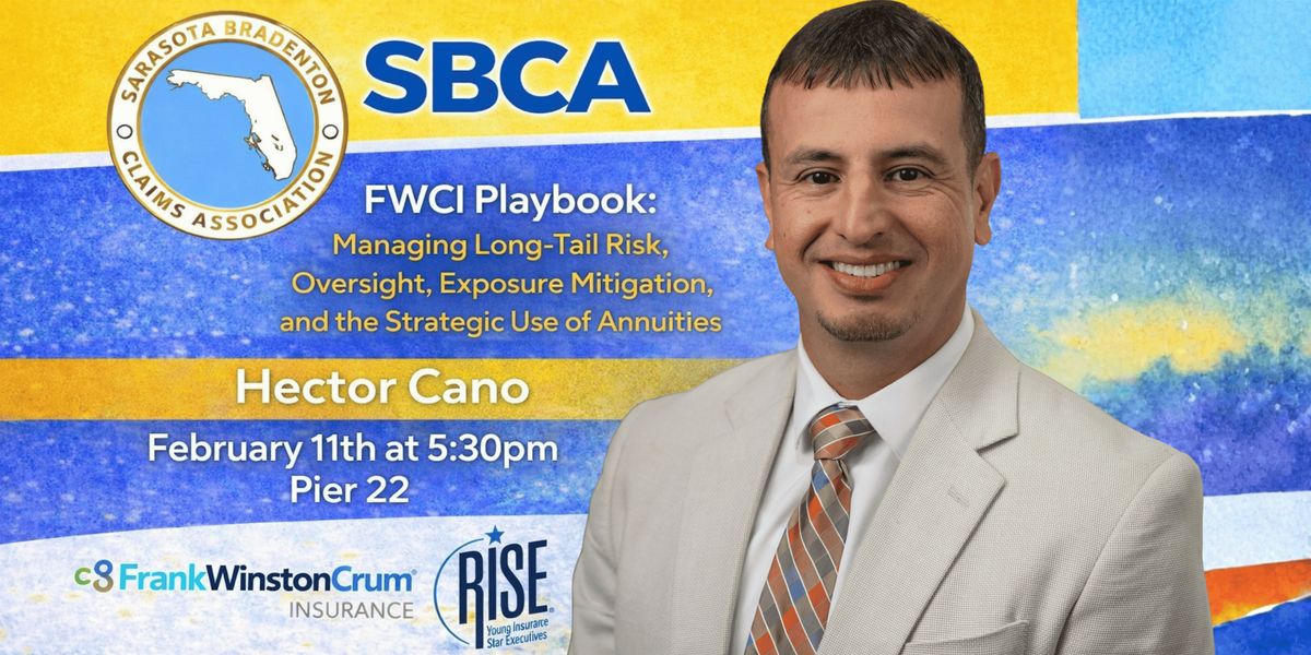 Long-tail Workers’ Compensation claims present some of the most complex and costly challenges facing today’s claims professionals. Join the Sarasota Bradenton Claims Association for an insightful and timely presentation, “Managing Long-Tail Risk: Oversight, Exposure Mitigation, and the Strategic Use of Annuities,” featuring industry thought leader Hector Cano.