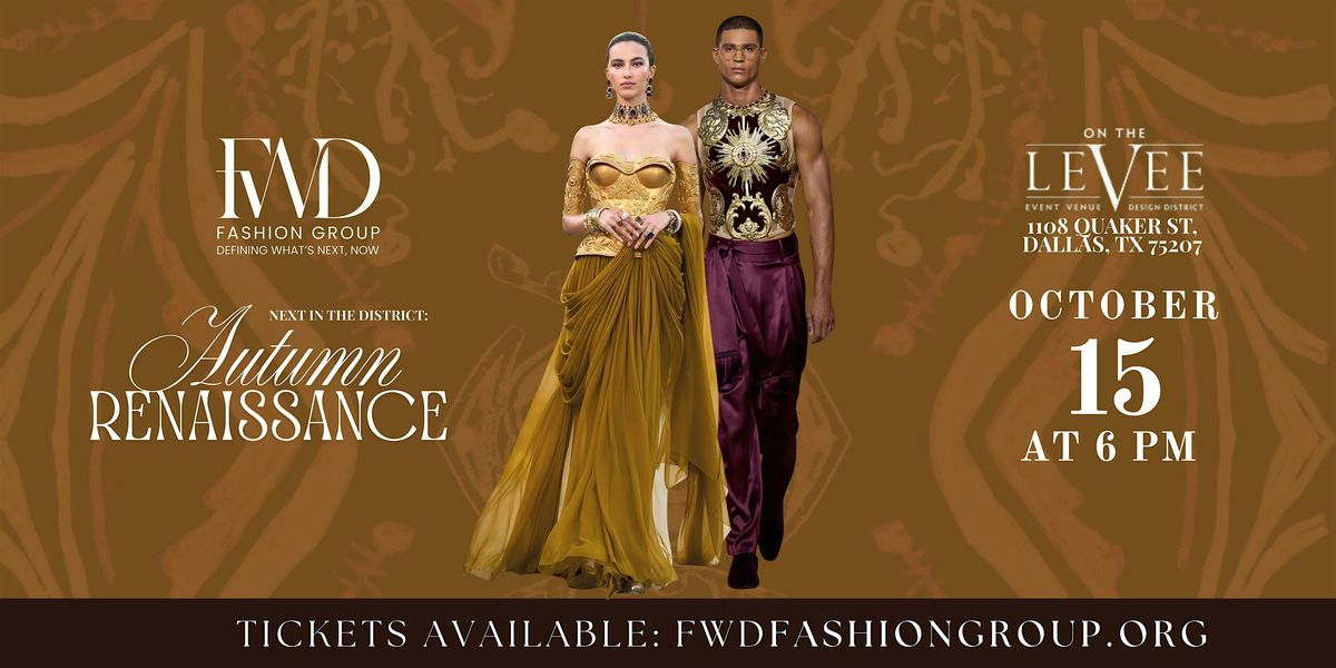 Step into a world where style meets creativity at Next In The District: Autumn Renaissance, presented by FWD Fashion Group. Taking place on October 15, 2025 at On The Levee in Dallas, TX, this one-of-a-kind runway-meets-marketplace experience will highlight the next generation of emerging designers while celebrating culture, innovation, and artistry.