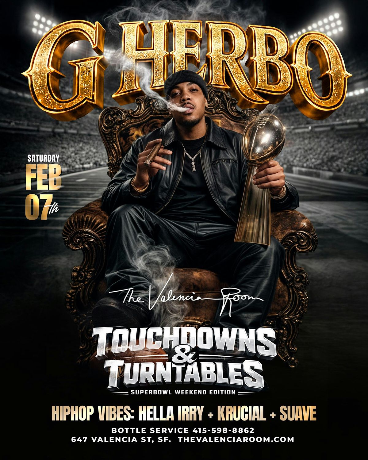 Super Bowl Touchdowns & Turntables series welcomes G Herbo live on the flow. A prime-time celebration with premium bottle service & invited athletes n celebs. Game recognize game — championship vibes all nite.