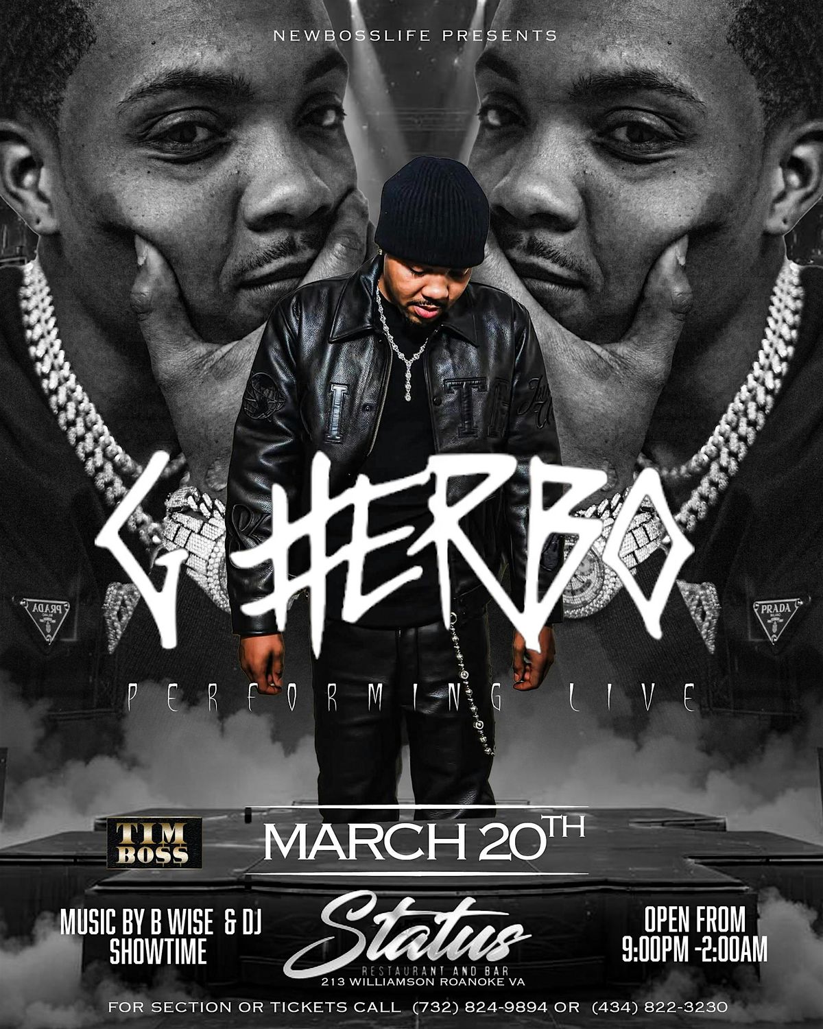 G Herbo performing live on 3/20/2026 at Status Lounge in Roanoke Va the return of Flashy Friday music by DJ Showtime & B Wise