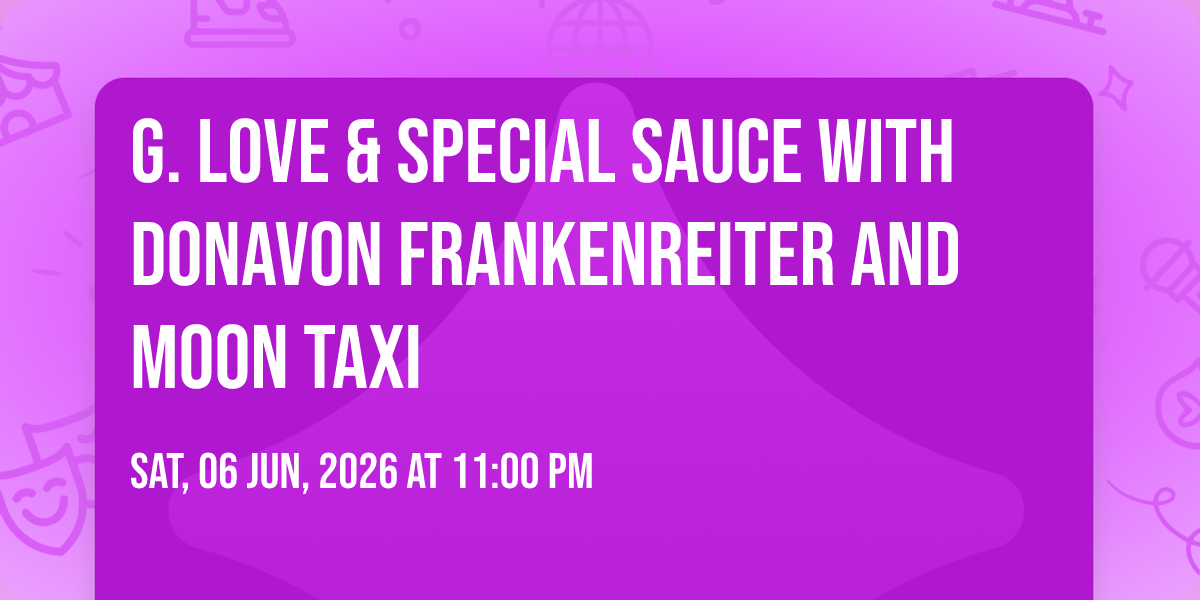 📍 Location: 29.8652, -81.2696🌟 Journey into wonder at G. Love & Special Sauce with Donavon Frankenreiter and Moon Taxi, where extraordinary experiences await around every corner! 🏛️ Set against the backdrop of St. Augustine Amphitheatre in dynamic Saint Augustine, FL, this event promises to exceed all expectations. 📅 Join us on June 6th, 2026 at 11:00 PM for a celebration that combines innovation, entertainment, and community spirit in perfect harmony. ✨ There will be an atmosphere where memories are made and stories come alive, ensuring every guest experiences something truly remarkable. 🎊 This is more than just an event; it's a journey into the extraordinary!