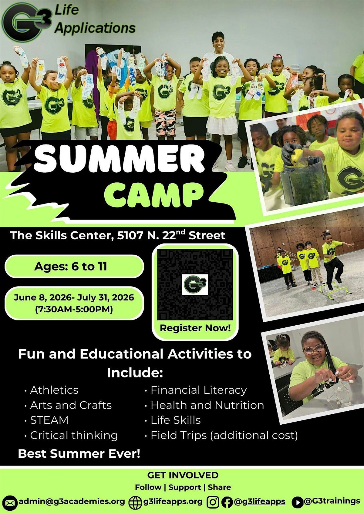 G3's Summer Enrichment Camp is a mix of everything a child needs to know to be a productive member of society. We mix exciting hands on activites, life skills, career exposure, technology and physical activity . All sesssions are designed to expose participants to vital information which every child will benefit from learning. We also place emphasis on equiping them with the tools that will lead to self sufficiency and success.